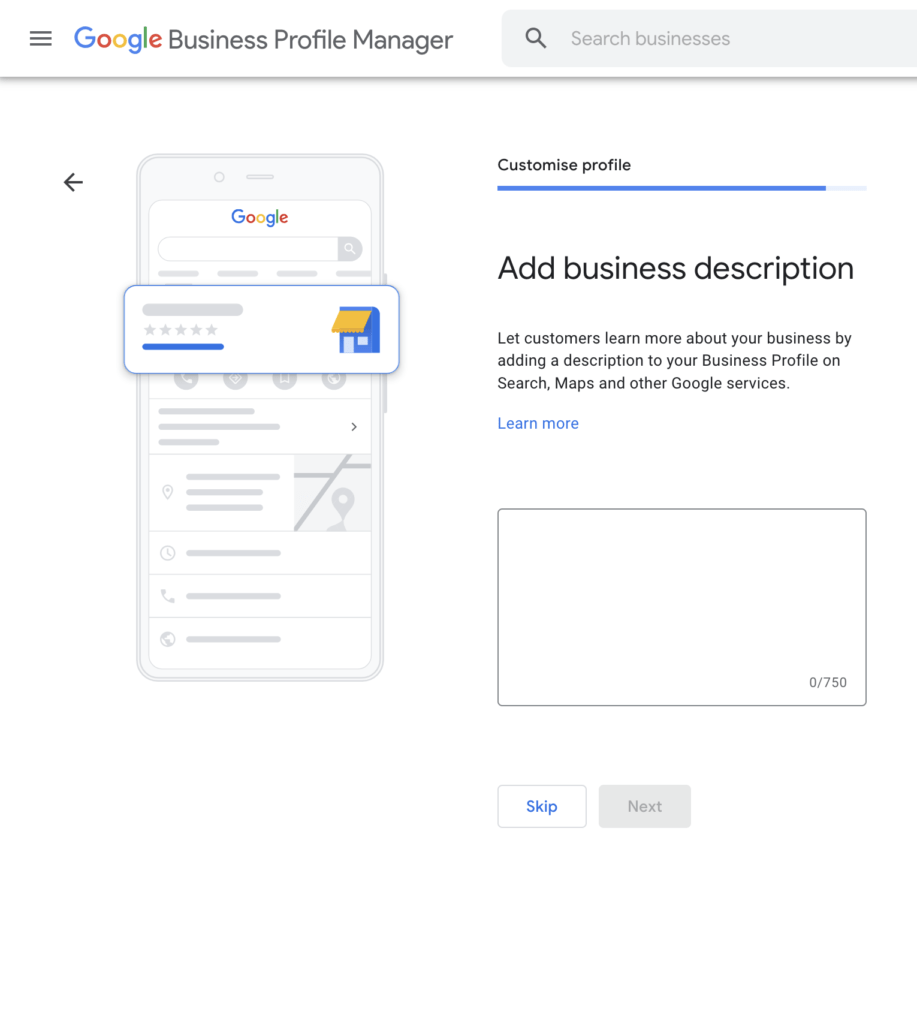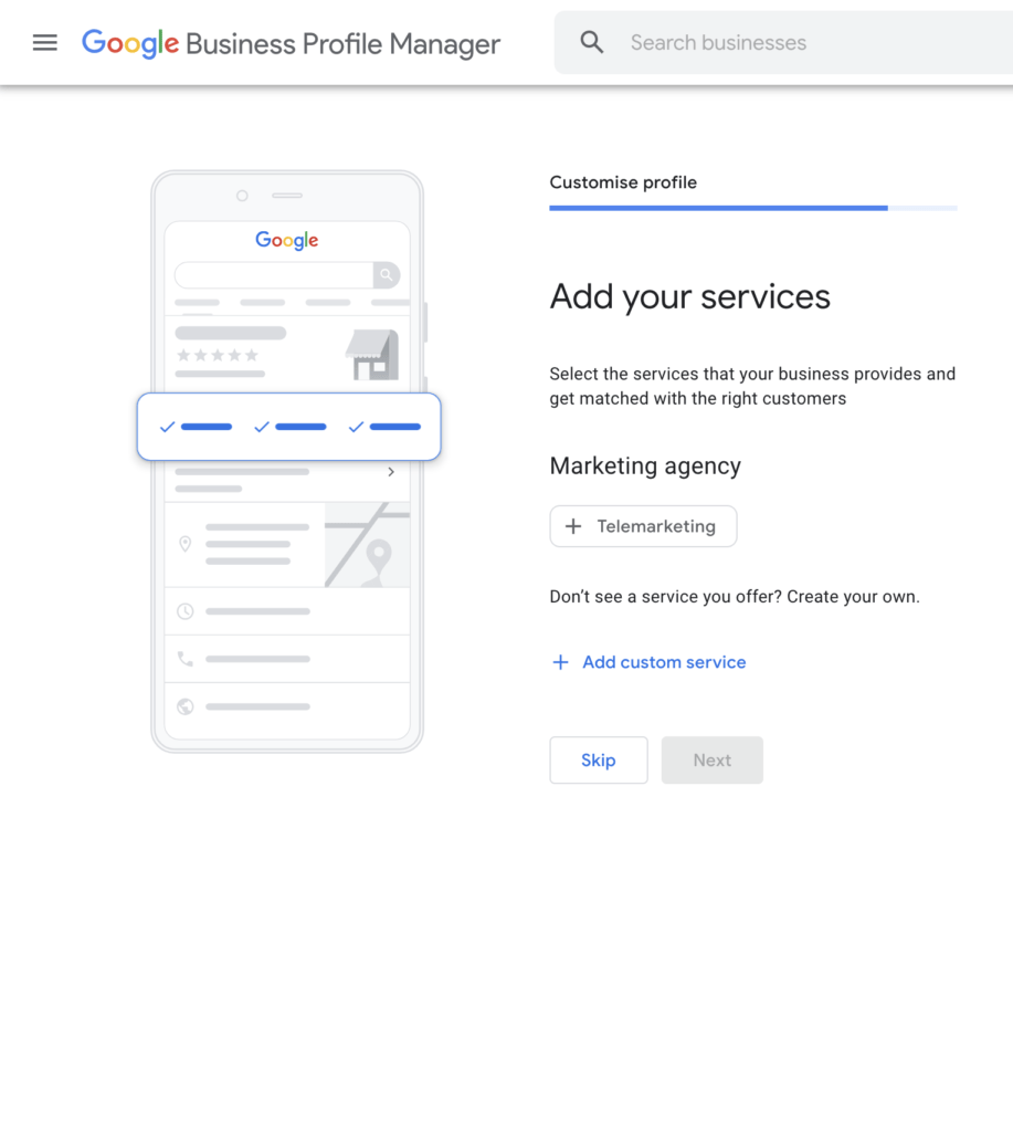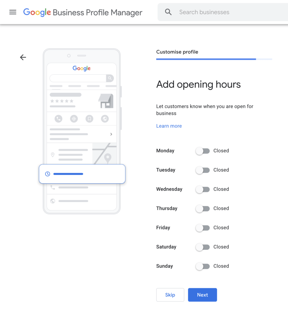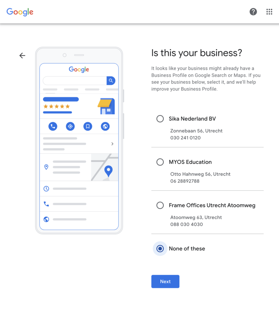 Je kunt later meerdere locaties of servicegebieden toevoegen en ervoor kiezen om je adres wel of niet op de kaart te tonen. Zorg er in beide gevallen voor dat de informatie exact overeenkomt met de gegevens op je website en andere online vermeldingen. Inconsistenties kunnen je ranking schaden.