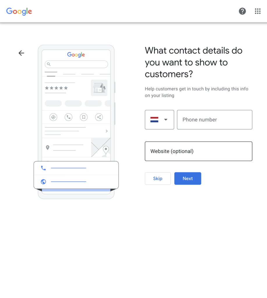 Voeg een telefoonnummer toe waarop je tijdens openingstijden bereikbaar bent en vul de URL van je website in. Volgens experts beperkt het weglaten van deze velden de manieren waarop klanten direct contact met je kunnen opnemen. Heb je geen website? Google biedt een eenvoudige site aan, maar investeren in een eigen website levert op lange termijn veel betere resultaten op.
