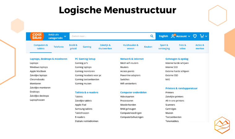 Het hoofdmenu is het eerste wat een gebruiker zal raadplegen wanneer hij iets zoekt op je website. Door het hoofdmenu correct en logisch in te delen, zorg je voor: