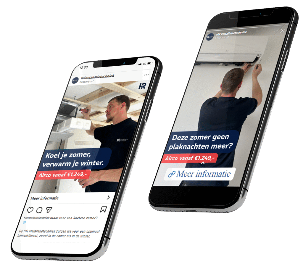 HR Installatietechniek wilde het aantal offerte-aanvragen voor airco-installaties structureel verhogen. Hoewel er al werd gewerkt met SEO en SEA, was het ook belangrijk om de doelgroep via een nieuw kanaal te bereiken. Het doel van de social media- en advertentiecampagnes was dan ook duidelijk: potentiële klanten overtuigen om een offerte aan te vragen voor het installeren van een airco.