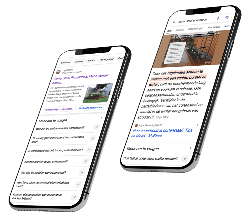 De basis van de MySteel-webshops was al goed, maar er waren nog volop mogelijkheden om ze verder te verbeteren, vooral op het gebied van topical authority en techniek. Het belangrijkste doel was om van MySteel dé cortenstaalexpert van Europa te maken. Met een volledig redesign van de blogsectie en het toevoegen van kwalitatieve longform content op de Nederlandse website hebben we indrukwekkende resultaten behaald.