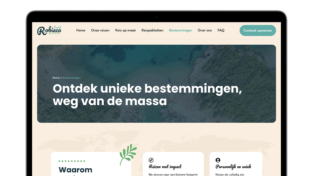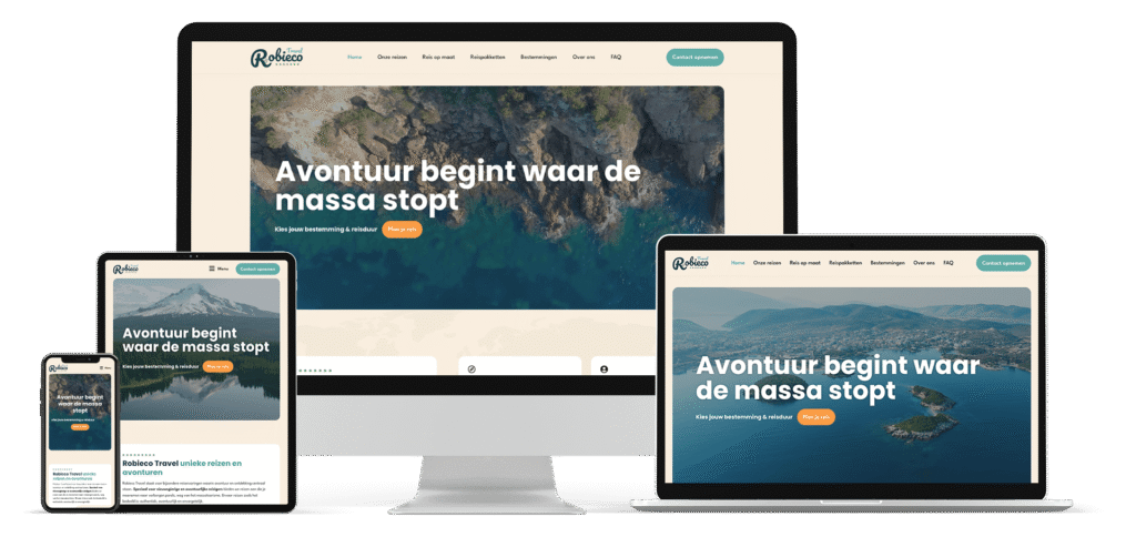 We zijn erg tevreden over het eindresultaat voor Robieco Travel: een sterk totaalplaatje met een herkenbaar logo, een bijpassende huisstijl en een gebruiksvriendelijke website die zijn unieke visie op reizen goed tot uiting brengt.