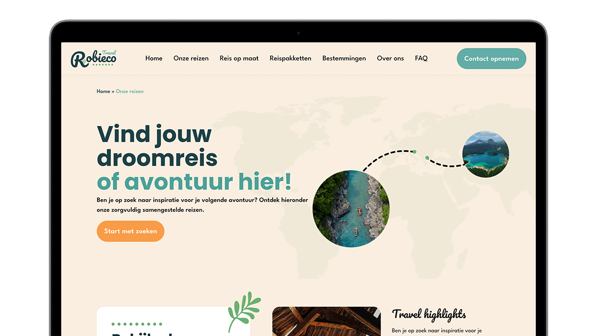 Robin wilde een website die met de juiste huisstijl en logo niet alleen inspireert, maar ook aanzet tot actie. Daarbij was het belangrijk dat zijn unieke visie op reizen goed online tot uiting kwam. Met deze input zijn we gestart met het ontwikkelen van een onderscheidende website, huisstijl en logo.