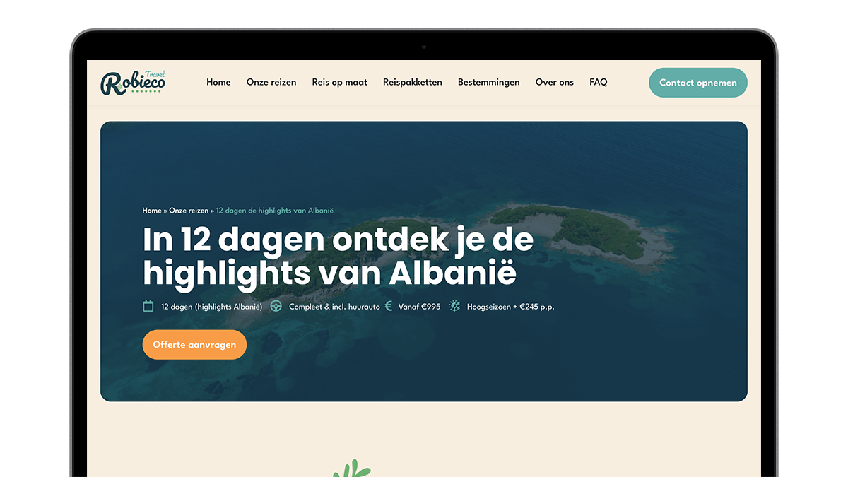 De bezoekers kunnen op deze manier snel de juiste informatie vinden, reizen boeken of informatie opvragen. Samen met Robieco Travel hebben we een mooie, gebruiksvriendelijke en conversiegerichte website neergezet. Benieuwd naar de website of wil je informeren voor een onvergetelijke reis? Check de website van Robieco Travel.